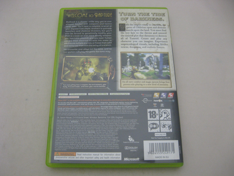 OverviewBioshock / The Elder Scrolls IV - Oblivion Combo for XBOX 360, complete.